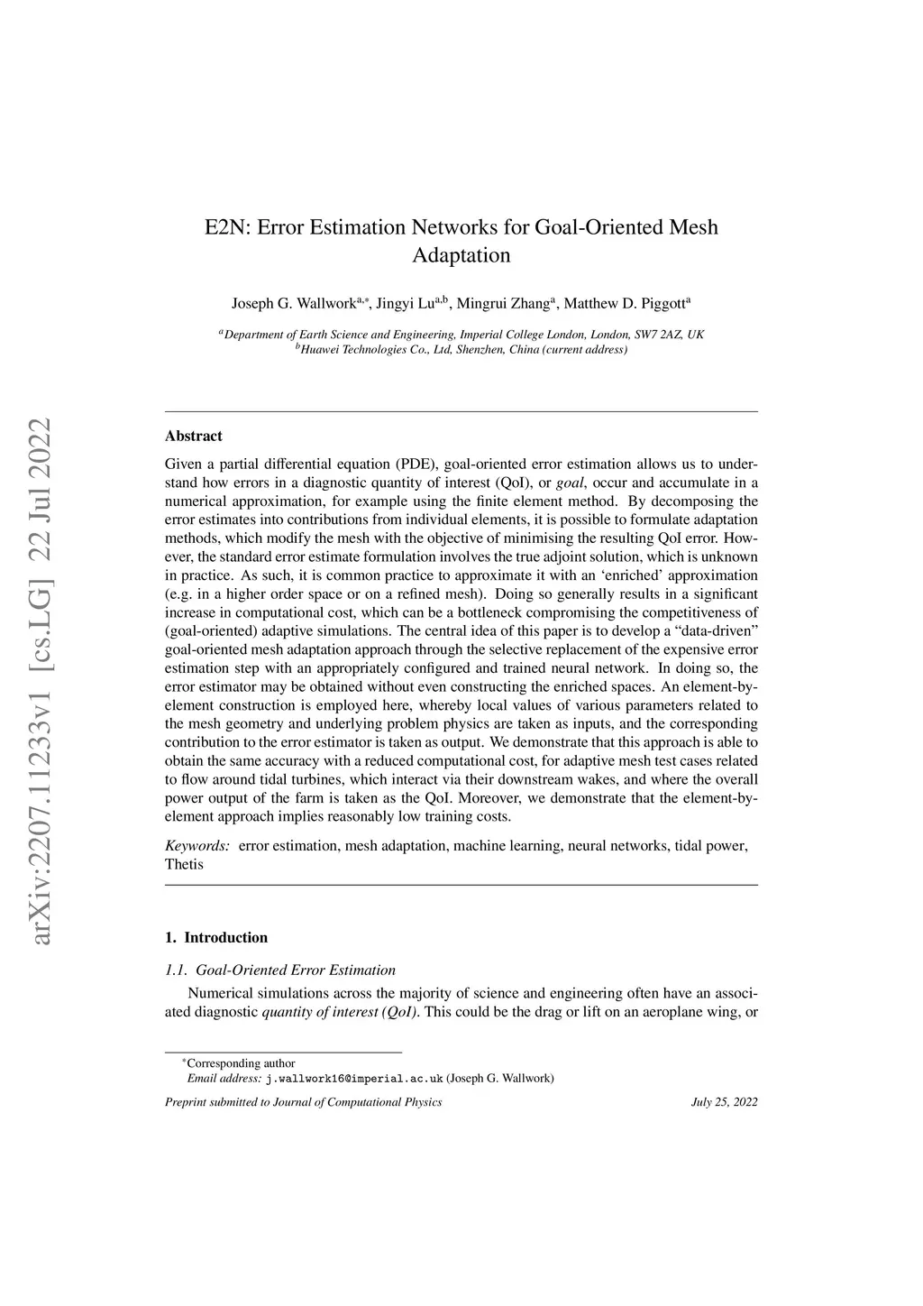 E2N: Error Estimation Networks for Goal-Oriented Mesh Adaptation