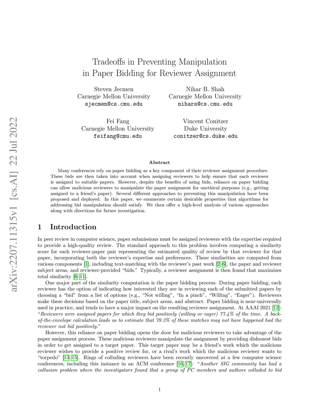 Tradeoffs in Preventing Manipulation in Paper Bidding for Reviewer