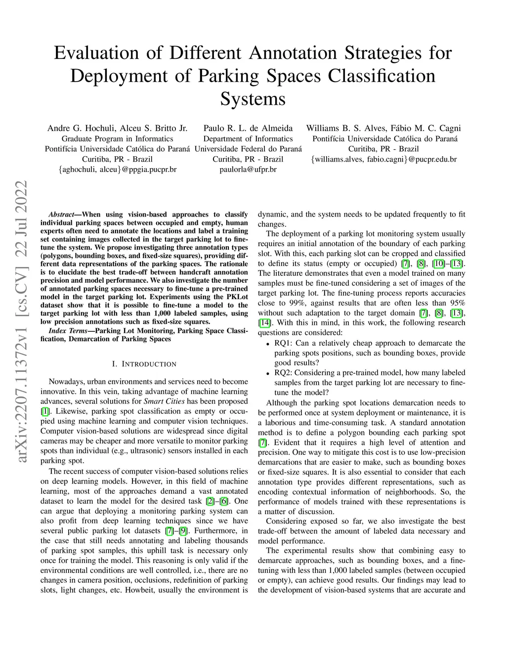Evaluation of Different Annotation Strategies for Deployment of Parking