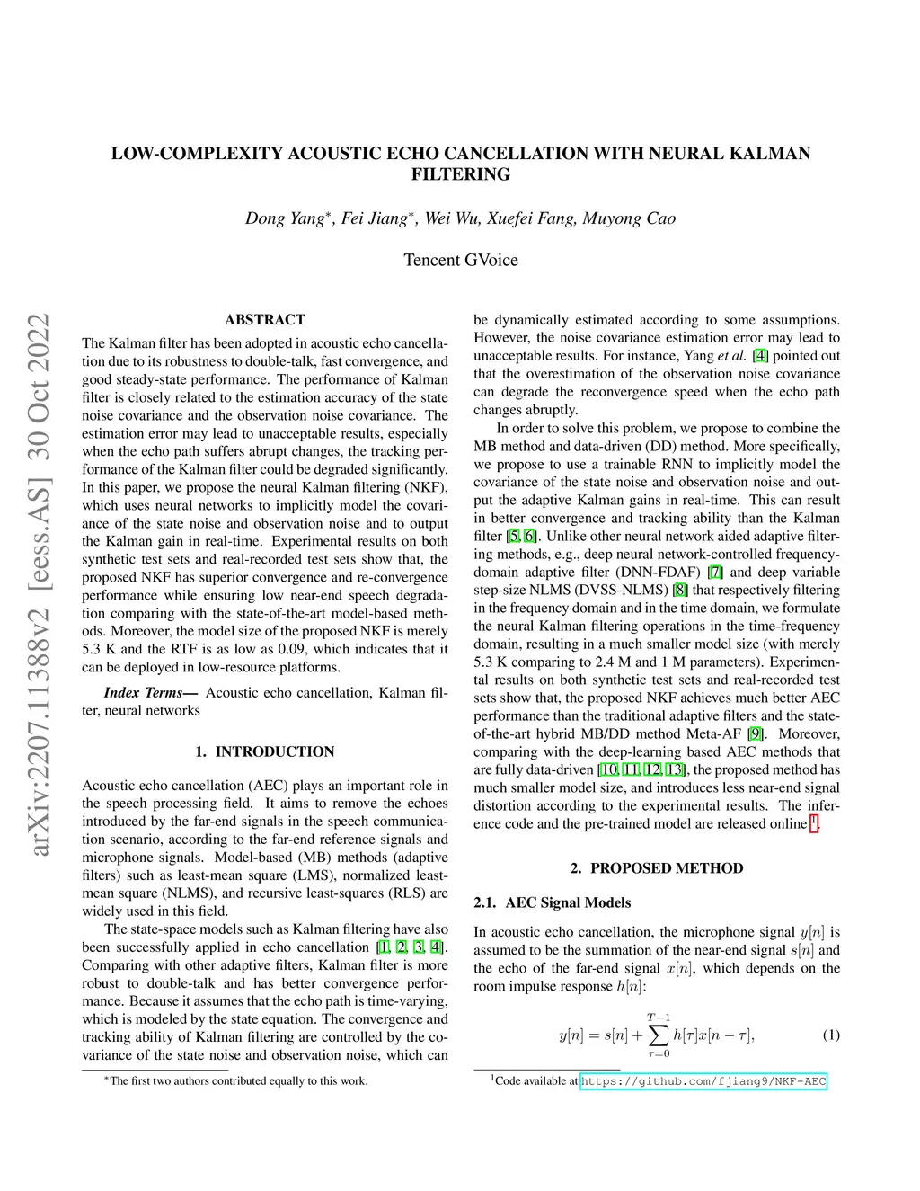 The Kalman filter has been adopted in acoustic echo cancellation due to its robustness to double-talk, fast convergence, and good steady-state performance. The performance of Kalman filter is closely related to the estimation accuracy of the state noise covariance and the observation noise covariance. The estimation error may lead to unacceptable results, especially when the echo path suffers abrupt changes, the tracking performance of the Kalman filter could be degraded significantly. In this paper, we propose the neural Kalman filtering (NKF), which uses neural networks to implicitly model the covariance of the state noise and observation noise and to output the Kalman gain in real-time. Experimental results on both synthetic test sets and real-recorded test sets show that, the proposed NKF has superior convergence and re-convergence performance while ensuring low near-end speech degradation comparing with the state-of-the-art model-based methods. Moreover, the model size of the proposed NKF is merely 5.3 K and the RTF is as low as 0.09, which indicates that it can be deployed in low-resource platforms.