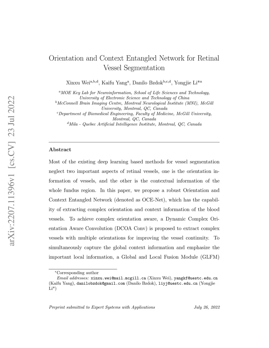 Orientation and Context Entangled Network for Retinal Vessel