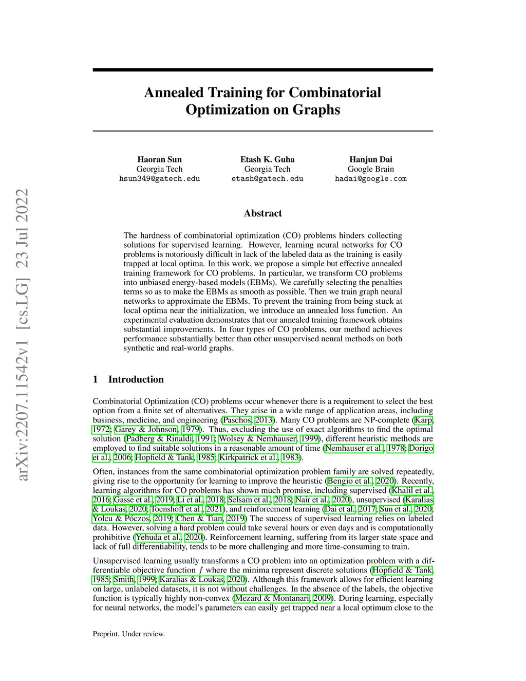 Annealed Training for Combinatorial Optimization on Graphs