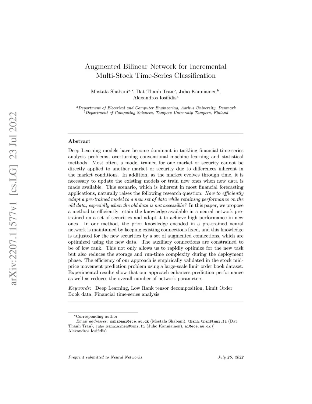 Augmented Bilinear Network for Incremental Multi-Stock Time-Series