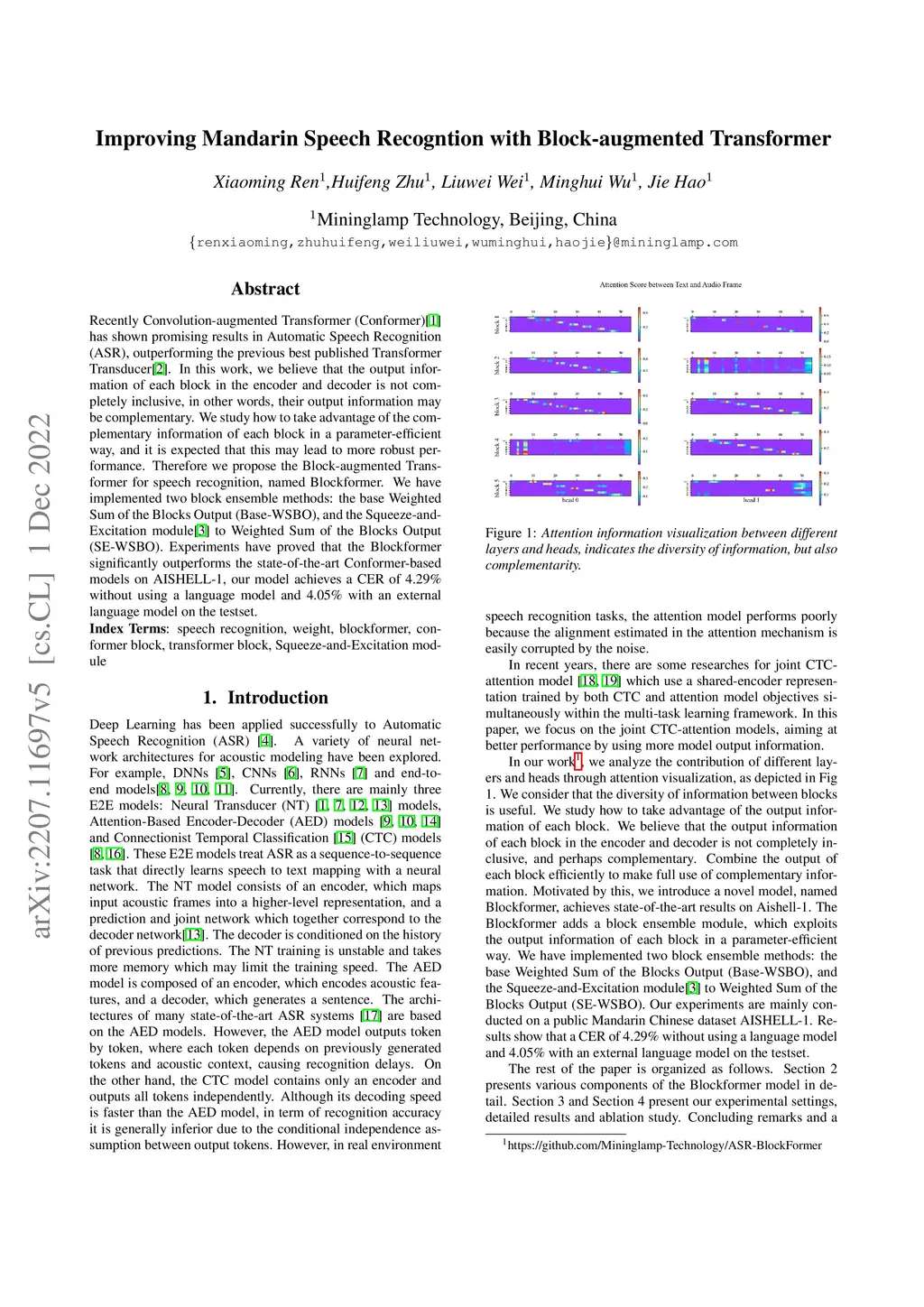 Improving Mandarin Speech Recogntion with Block-augmented Transformer
