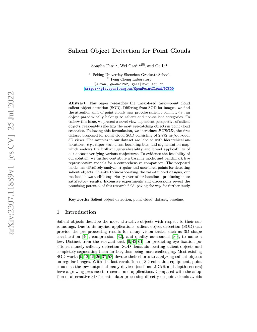 This paper researches the unexplored task-point cloud salient object detection (SOD). Differing from SOD for images, we find the attention shift of point clouds may provoke saliency conflict, i.e., an object paradoxically belongs to salient and non-salient categories. To eschew this issue, we present a novel view-dependent perspective of salient objects, reasonably reflecting the most eye-catching objects in point cloud scenarios. Following this formulation, we introduce PCSOD, the first dataset proposed for point cloud SOD consisting of 2,872 in-/out-door 3D views. The samples in our dataset are labeled with hierarchical annotations, e.g., super-/sub-class, bounding box, and segmentation map, which endows the brilliant generalizability and broad applicability of our dataset verifying various conjectures. To evidence the feasibility of our solution, we further contribute a baseline model and benchmark five representative models for a comprehensive comparison. The proposed model can effectively analyze irregular and unordered points for detecting salient objects. Thanks to incorporating the task-tailored designs, our method shows visible superiority over other baselines, producing more satisfactory results. Extensive experiments and discussions reveal the promising potential of this research field, paving the way for further study.