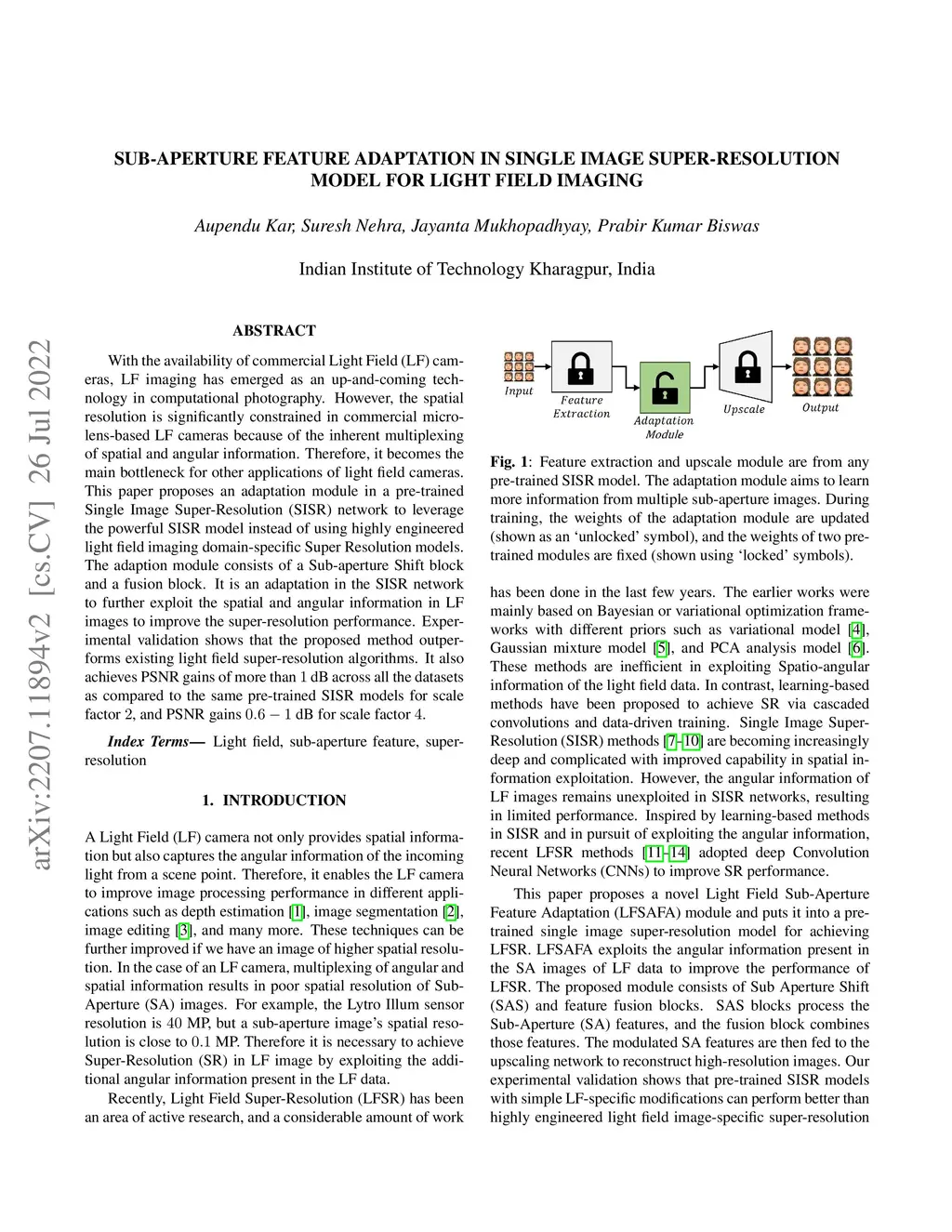 Sub-Aperture Feature Adaptation in Single Image Super-resolution Model
