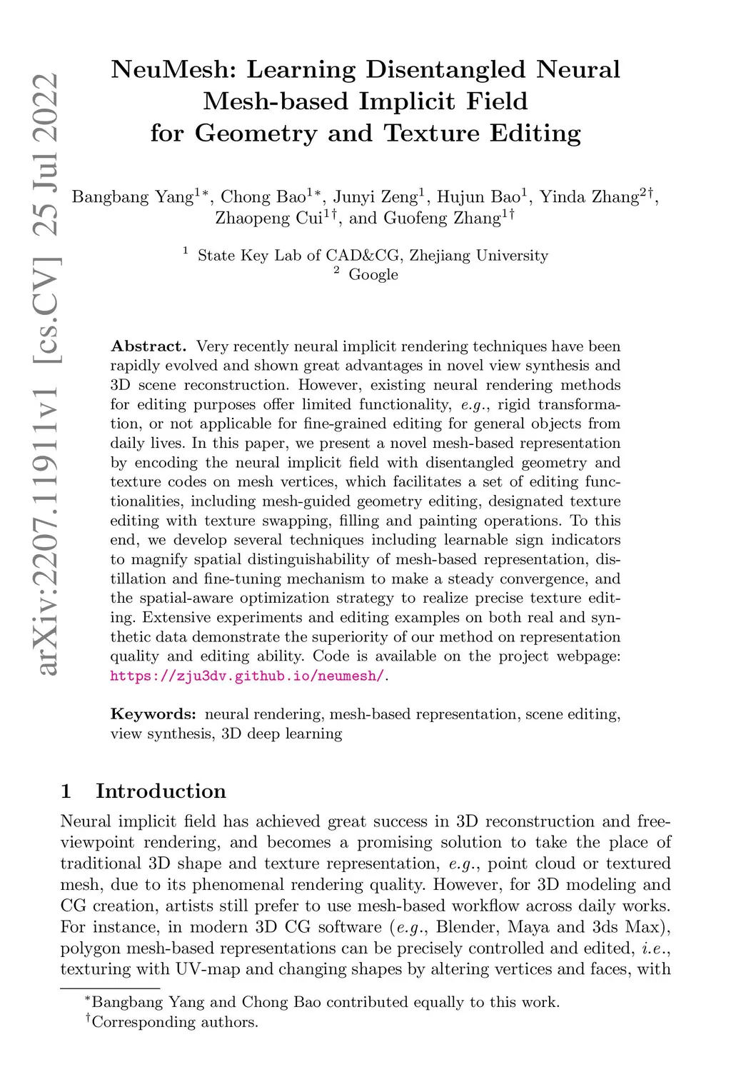 NeuMesh: Learning Disentangled Neural Mesh-based Implicit Field for