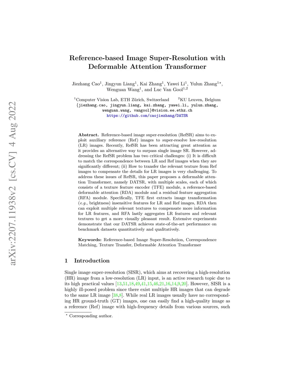 Reference-based Image Super-Resolution with Deformable Attention Transformer