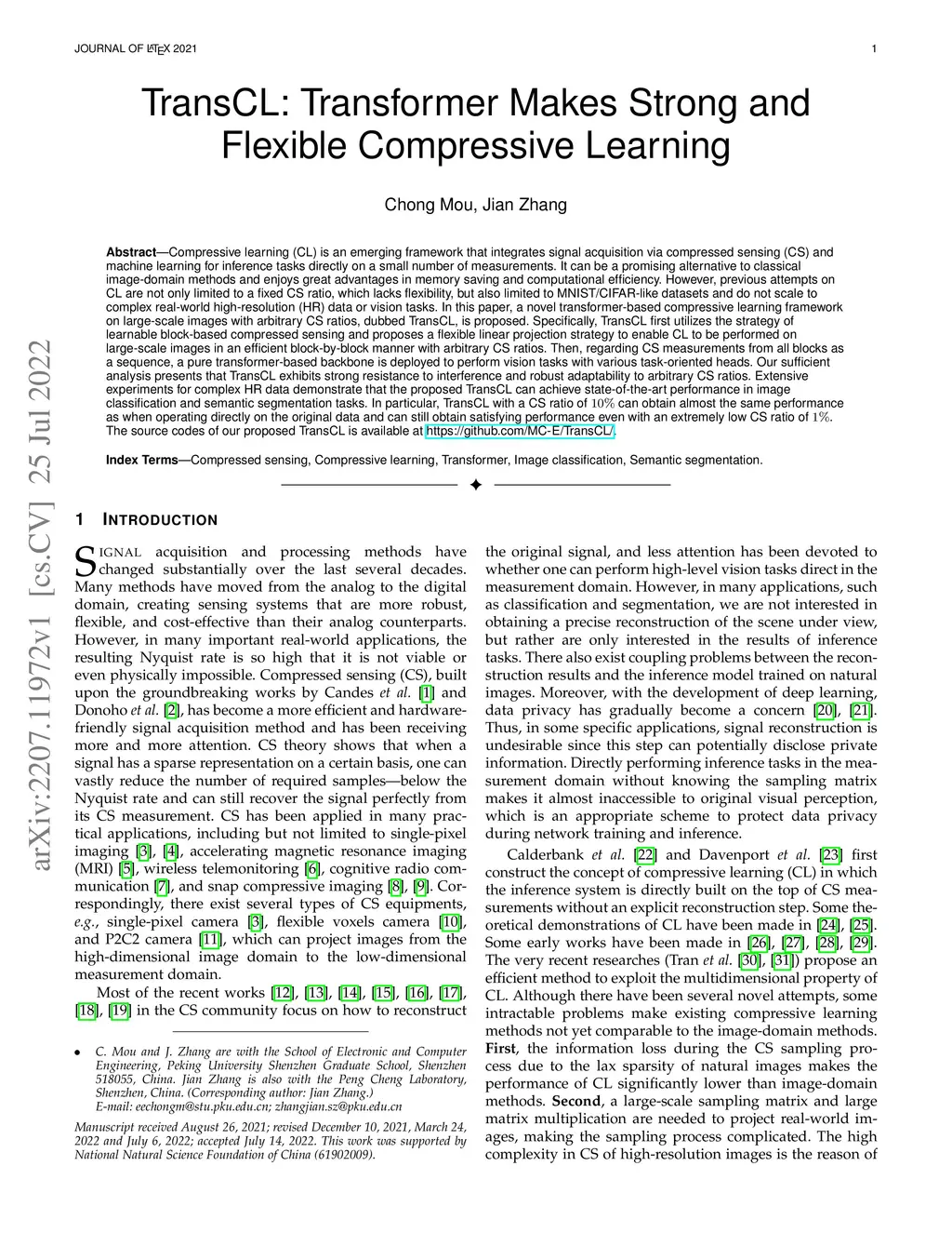 TransCL: Transformer Makes Strong and Flexible Compressive Learning