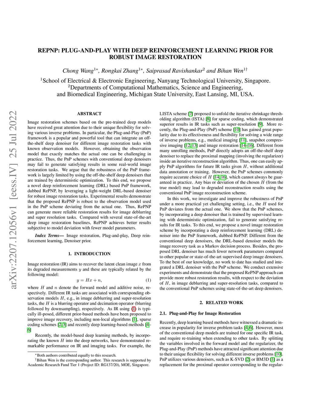 REPNP: Plug-and-Play with Deep Reinforcement Learning Prior for Robust