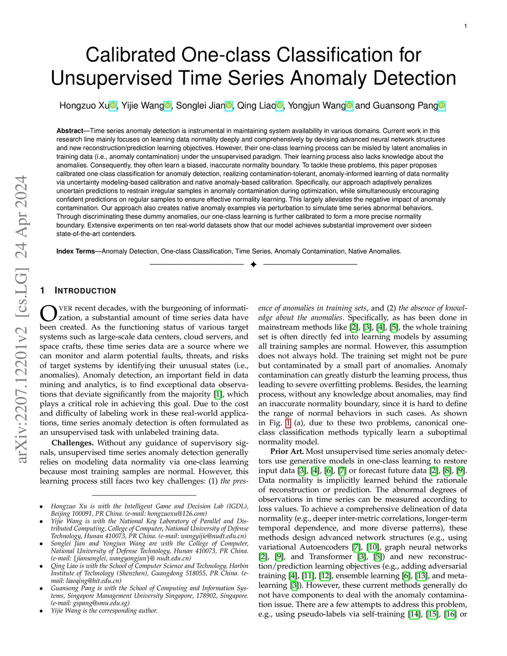 Calibrated One-class Classification for Unsupervised Time Series Anomaly