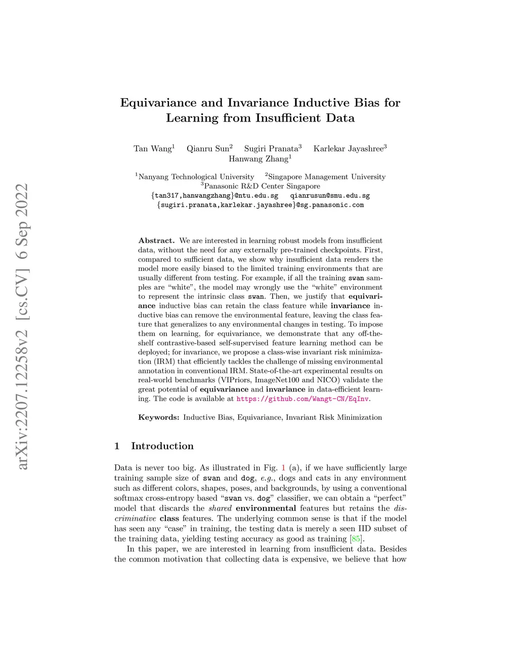 Equivariance and Invariance Inductive Bias for Learning from