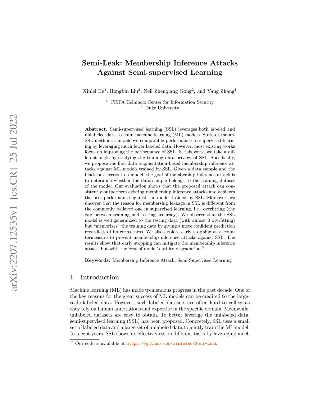 Semi-Leak: Membership Inference Attacks Against Semi-supervised Learning