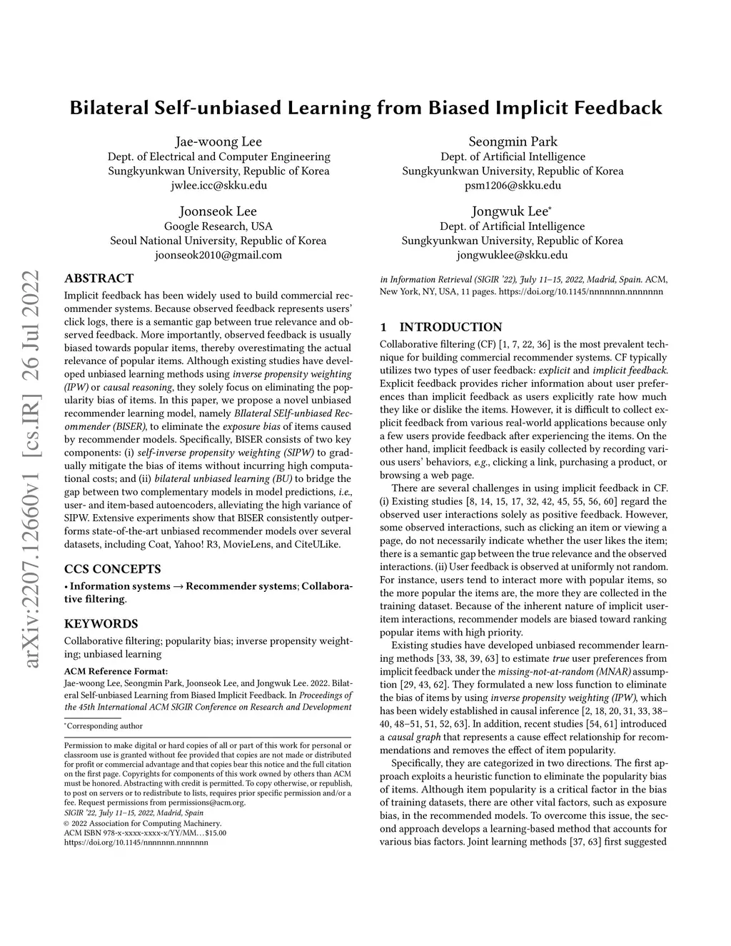 Bilateral Self-unbiased Learning from Biased Implicit Feedback