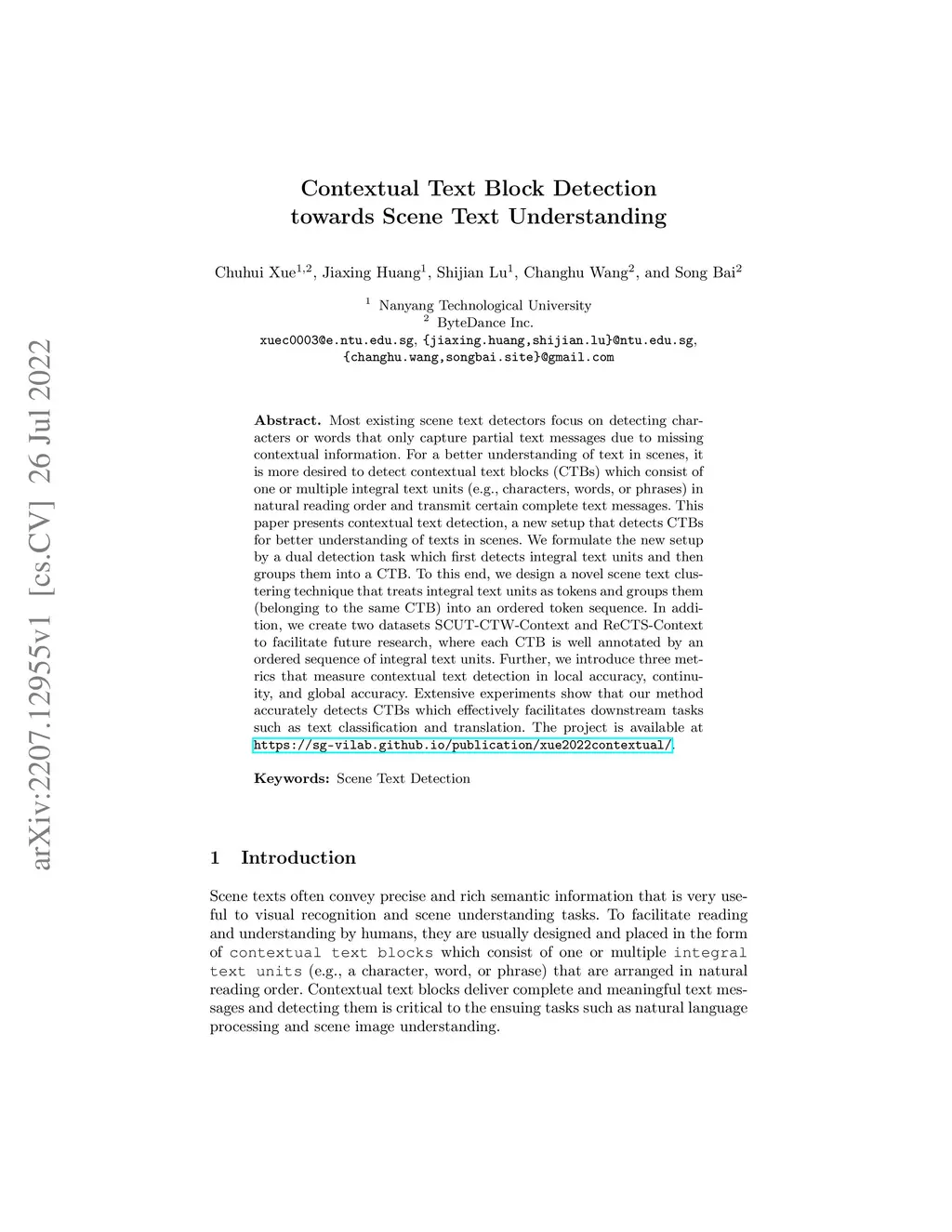 Contextual Text Block Detection towards Scene Text Understanding