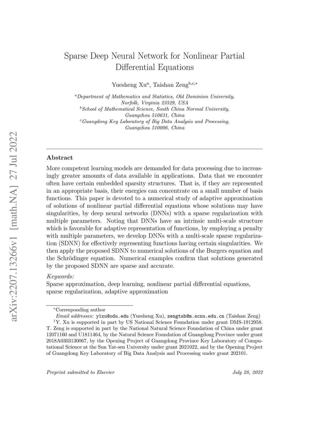 Sparse Deep Neural Network for Nonlinear Partial Differential Equations