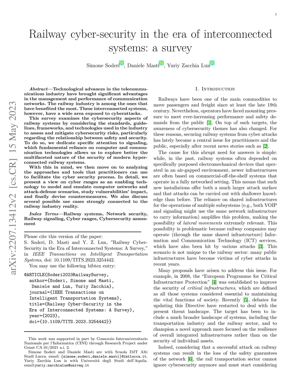 Technological advances in the telecommunications industry have brought significant advantages in the management and performance of communication networks. The railway industry is among the ones that have benefited the most. These interconnected systems, however, have a wide area exposed to cyberattacks. This survey examines the cybersecurity aspects of railway systems by considering the standards, guidelines, frameworks, and technologies used in the industry to assess and mitigate cybersecurity risks, particularly regarding the relationship between safety and security. To do so, we dedicate specific attention to signaling, which fundamental reliance on computer and communication technologies allows us to explore better the multifaceted nature of the security of modern hyperconnected railway systems. With this in mind, we then move on to analyzing the approaches and tools that practitioners can use to facilitate the cyber security process. In detail, we present a view on cyber ranges as an enabling technology to model and emulate computer networks and attack-defense scenarios, study vulnerabilities' impact, and finally devise countermeasures. We also discuss several possible use cases strongly connected to the railway industry reality.