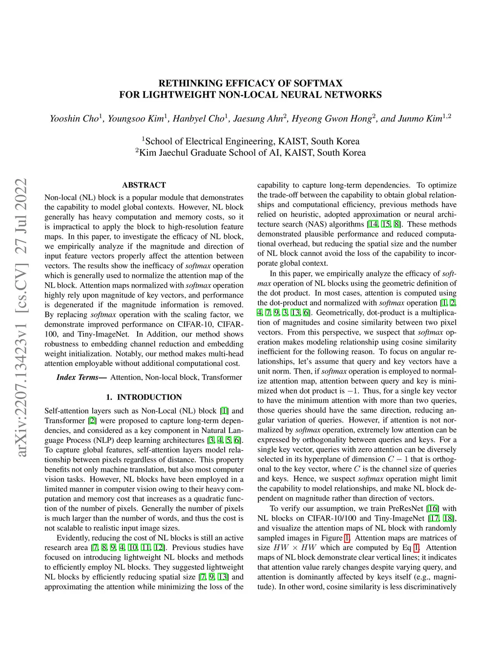 Non-local (NL) block is a popular module that demonstrates the capability to model global contexts. However, NL block generally has heavy computation and memory costs, so it is impractical to apply the block to high-resolution feature maps. In this paper, to investigate the efficacy of NL block, we empirically analyze if the magnitude and direction of input feature vectors properly affect the attention between vectors. The results show the inefficacy of softmax operation which is generally used to normalize the attention map of the NL block. Attention maps normalized with softmax operation highly rely upon magnitude of key vectors, and performance is degenerated if the magnitude information is removed. By replacing softmax operation with the scaling factor, we demonstrate improved performance on CIFAR-10, CIFAR-100, and Tiny-ImageNet. In Addition, our method shows robustness to embedding channel reduction and embedding weight initialization. Notably, our method makes multi-head attention employable without additional computational cost.