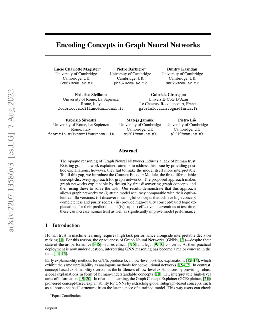 The opaque reasoning of Graph Neural Networks induces a lack of human trust. Existing graph network explainers attempt to address this issue by providing post-hoc explanations, however, they fail to make the model itself more interpretable. To fill this gap, we introduce the Concept Encoder Module, the first differentiable concept-discovery approach for graph networks. The proposed approach makes graph networks explainable by design by first discovering graph concepts and then using these to solve the task. Our results demonstrate that this approach allows graph networks to: (i) attain model accuracy comparable with their equivalent vanilla versions, (ii) discover meaningful concepts that achieve high concept completeness and purity scores, (iii) provide high-quality concept-based logic explanations for their prediction, and (iv) support effective interventions at test time: these can increase human trust as well as significantly improve model performance.