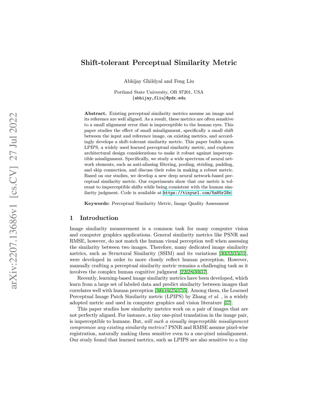 Shift-tolerant Perceptual Similarity Metric