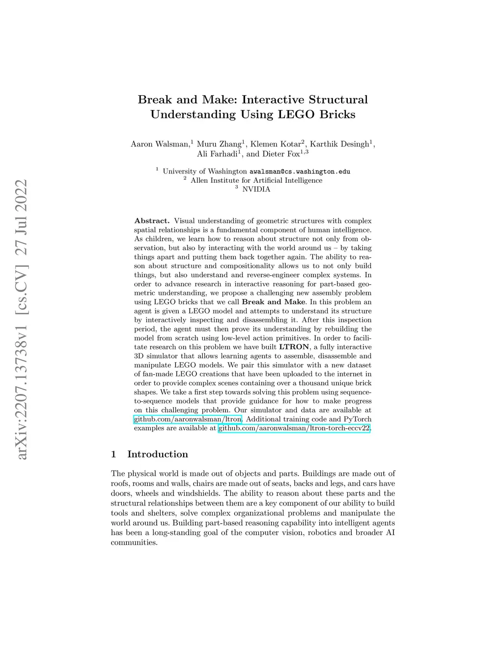Visual understanding of geometric structures with complex spatial relationships is a fundamental component of human intelligence. As children, we learn how to reason about structure not only from observation, but also by interacting with the world around us -- by taking things apart and putting them back together again. The ability to reason about structure and compositionality allows us to not only build things, but also understand and reverse-engineer complex systems. In order to advance research in interactive reasoning for part-based geometric understanding, we propose a challenging new assembly problem using LEGO bricks that we call Break and Make. In this problem an agent is given a LEGO model and attempts to understand its structure by interactively inspecting and disassembling it. After this inspection period, the agent must then prove its understanding by rebuilding the model from scratch using low-level action primitives. In order to facilitate research on this problem we have built LTRON, a fully interactive 3D simulator that allows learning agents to assemble, disassemble and manipulate LEGO models. We pair this simulator with a new dataset of fan-made LEGO creations that have been uploaded to the internet in order to provide complex scenes containing over a thousand unique brick shapes. We take a first step towards solving this problem using sequence-to-sequence models that provide guidance for how to make progress on this challenging problem. Our simulator and data are available at github.com/aaronwalsman/ltron. Additional training code and PyTorch examples are available at github.com/aaronwalsman/ltron-torch-eccv22.