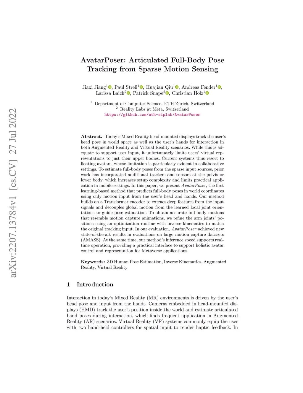 AvatarPoser: Articulated Full-Body Pose Tracking from Sparse Motion