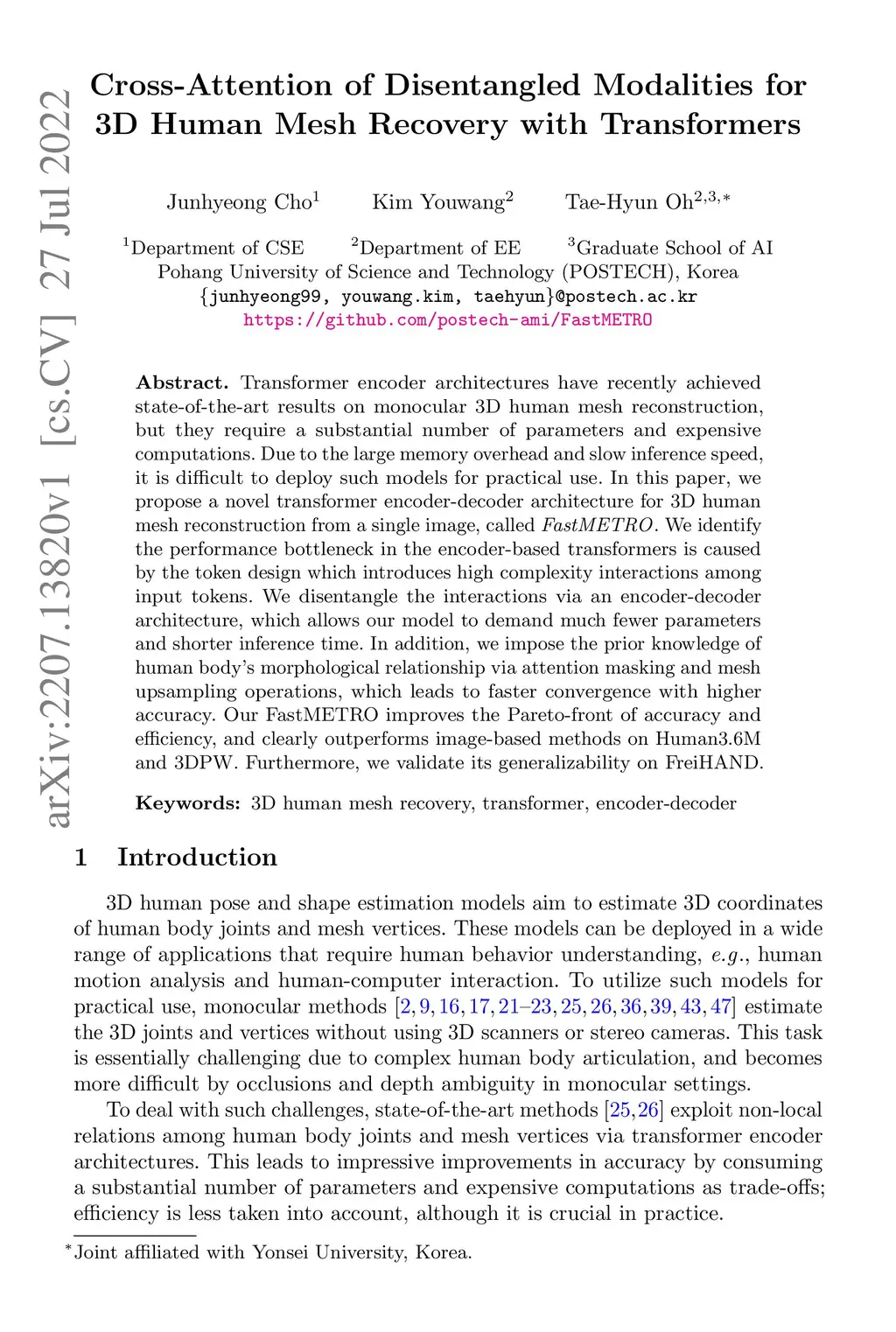 Cross-Attention of Disentangled Modalities for 3D Human Mesh Recovery