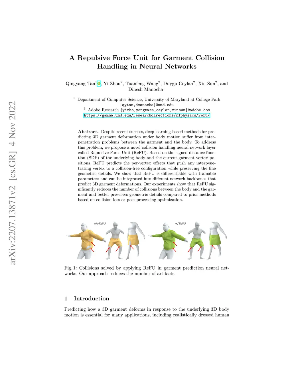 A Repulsive Force Unit for Garment Collision Handling in Neural Networks