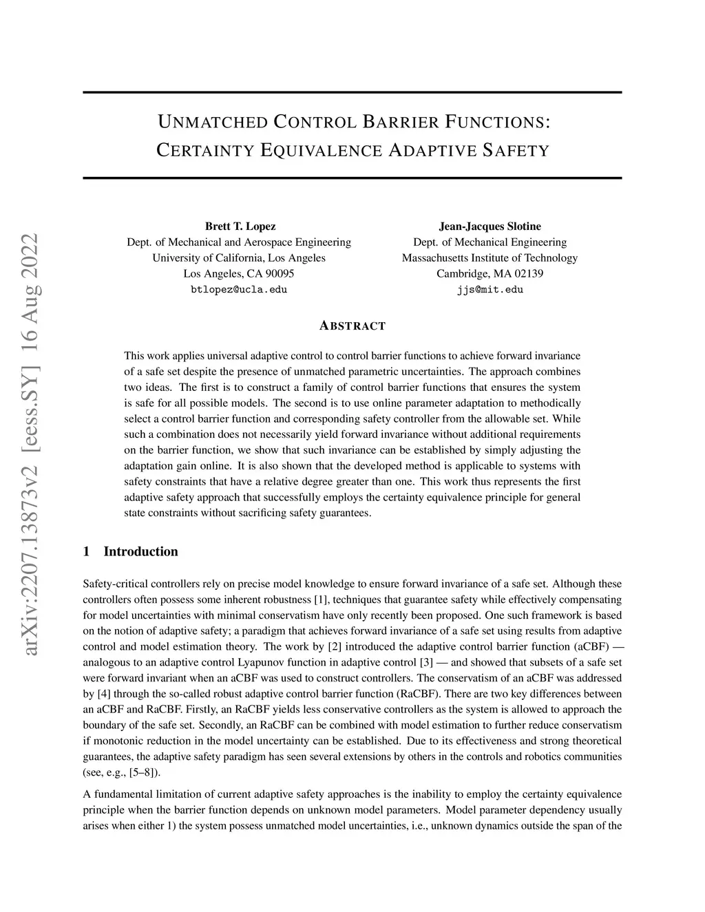 Unmatched Control Barrier Functions: Certainty Equivalence Adaptive