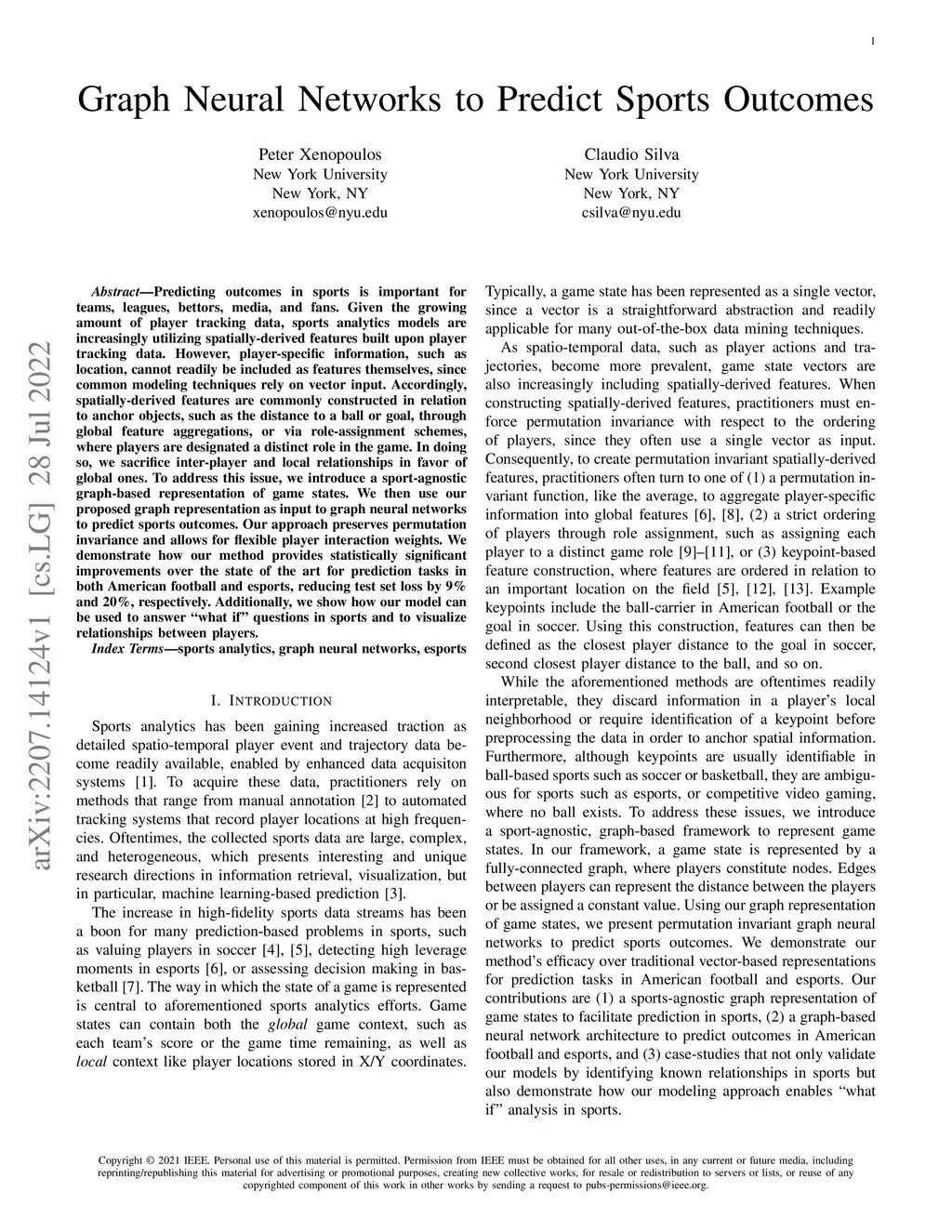 Predicting outcomes in sports is important for teams, leagues, bettors, media, and fans. Given the growing amount of player tracking data, sports analytics models are increasingly utilizing spatially-derived features built upon player tracking data. However, player-specific information, such as location, cannot readily be included as features themselves, since common modeling techniques rely on vector input. Accordingly, spatially-derived features are commonly constructed in relation to anchor objects, such as the distance to a ball or goal, through global feature aggregations, or via role-assignment schemes, where players are designated a distinct role in the game. In doing so, we sacrifice inter-player and local relationships in favor of global ones. To address this issue, we introduce a sport-agnostic graph-based representation of game states. We then use our proposed graph representation as input to graph neural networks to predict sports outcomes. Our approach preserves permutation invariance and allows for flexible player interaction weights. We demonstrate how our method provides statistically significant improvements over the state of the art for prediction tasks in both American football and esports, reducing test set loss by 9% and 20%, respectively. Additionally, we show how our model can be used to answer "what if" questions in sports and to visualize relationships between players.