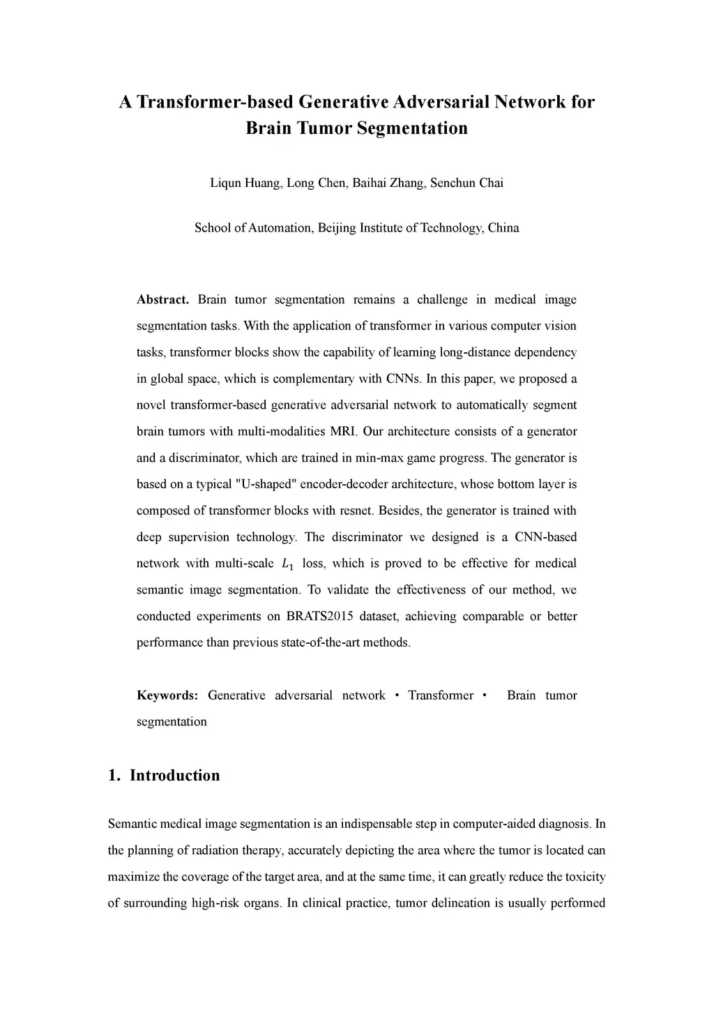 A Transformer-based Generative Adversarial Network for Brain Tumor