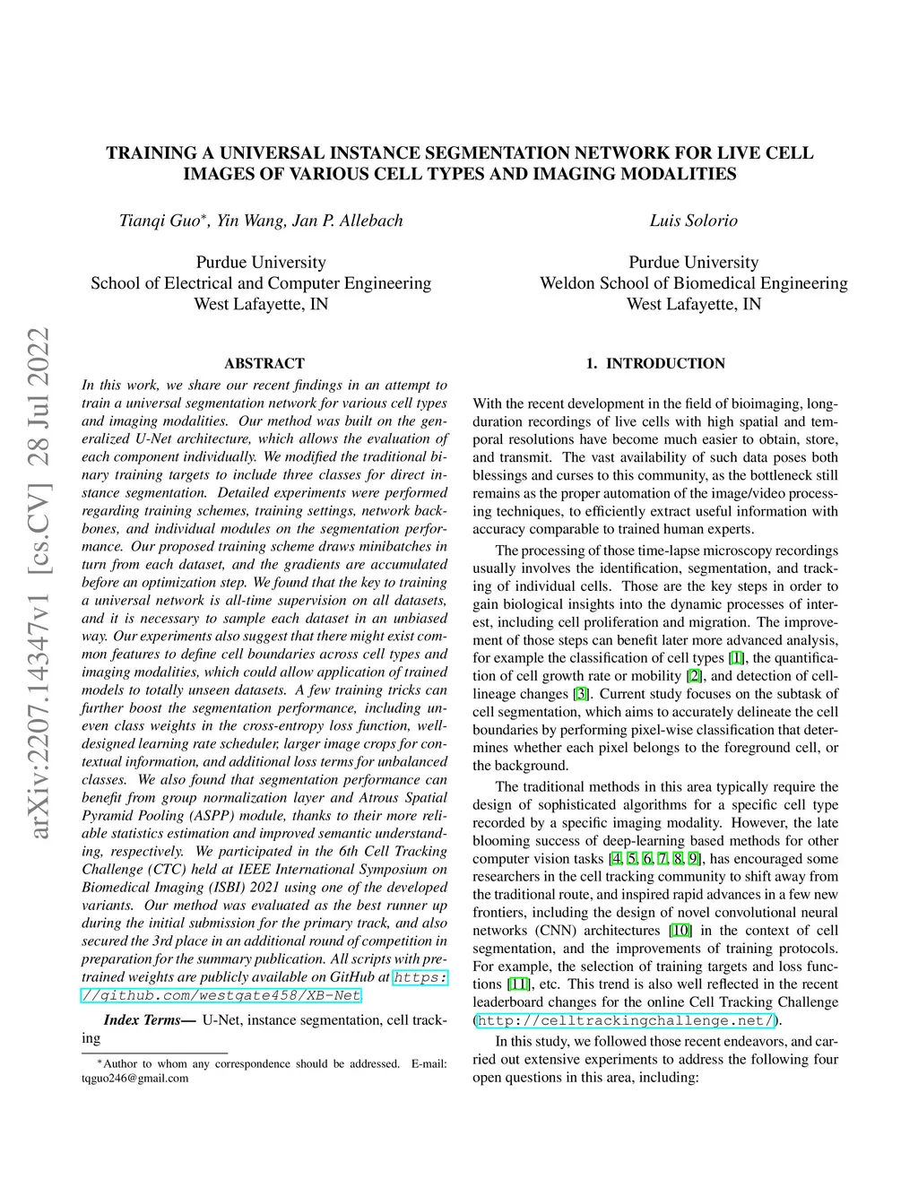 Training a universal instance segmentation network for live cell images