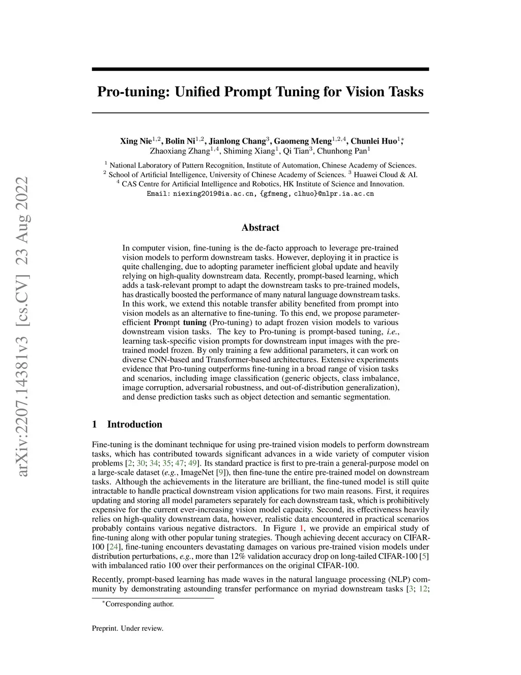 Pro-tuning: Unified Prompt Tuning for Vision Tasks