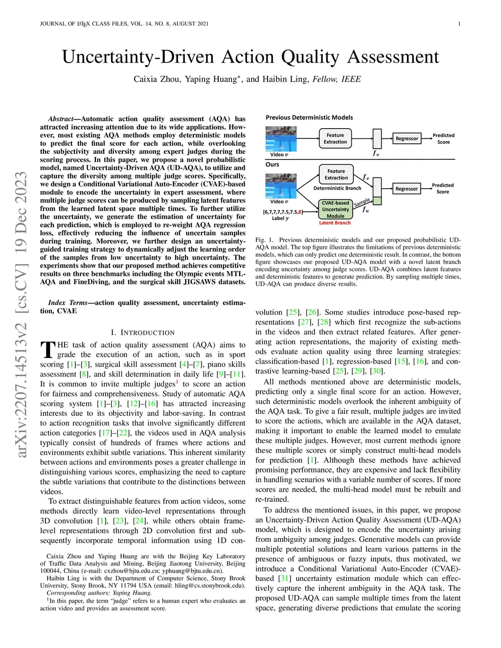 Automatic action quality assessment (AQA) has attracted increasing attention due to its wide applications. However, most existing AQA methods employ deterministic models to predict the final score for each action, while overlooking the subjectivity and diversity among expert judges during the scoring process. In this paper, we propose a novel probabilistic model, named Uncertainty-Driven AQA (UD-AQA), to utilize and capture the diversity among multiple judge scores. Specifically, we design a Conditional Variational Auto-Encoder (CVAE)-based module to encode the uncertainty in expert assessment, where multiple judge scores can be produced by sampling latent features from the learned latent space multiple times. To further utilize the uncertainty, we generate the estimation of uncertainty for each prediction, which is employed to re-weight AQA regression loss, effectively reducing the influence of uncertain samples during training. Moreover, we further design an uncertainty-guided training strategy to dynamically adjust the learning order of the samples from low uncertainty to high uncertainty. The experiments show that our proposed method achieves competitive results on three benchmarks including the Olympic events MTL-AQA and FineDiving, and the surgical skill JIGSAWS datasets.
