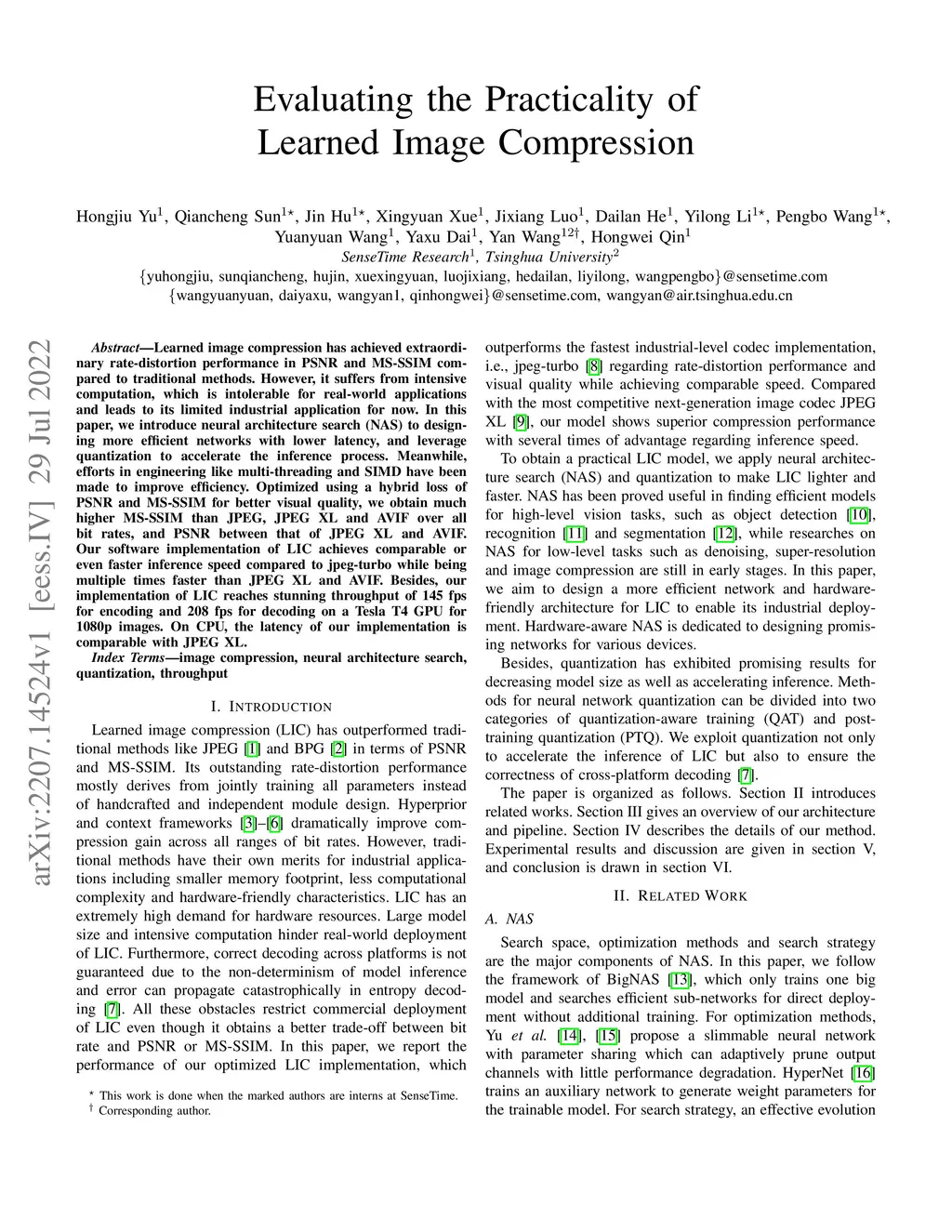 Learned image compression has achieved extraordinary rate-distortion performance in PSNR and MS-SSIM compared to traditional methods. However, it suffers from intensive computation, which is intolerable for real-world applications and leads to its limited industrial application for now. In this paper, we introduce neural architecture search (NAS) to designing more efficient networks with lower latency, and leverage quantization to accelerate the inference process. Meanwhile, efforts in engineering like multi-threading and SIMD have been made to improve efficiency. Optimized using a hybrid loss of PSNR and MS-SSIM for better visual quality, we obtain much higher MS-SSIM than JPEG, JPEG XL and AVIF over all bit rates, and PSNR between that of JPEG XL and AVIF. Our software implementation of LIC achieves comparable or even faster inference speed compared to jpeg-turbo while being multiple times faster than JPEG XL and AVIF. Besides, our implementation of LIC reaches stunning throughput of 145 fps for encoding and 208 fps for decoding on a Tesla T4 GPU for 1080p images. On CPU, the latency of our implementation is comparable with JPEG XL.