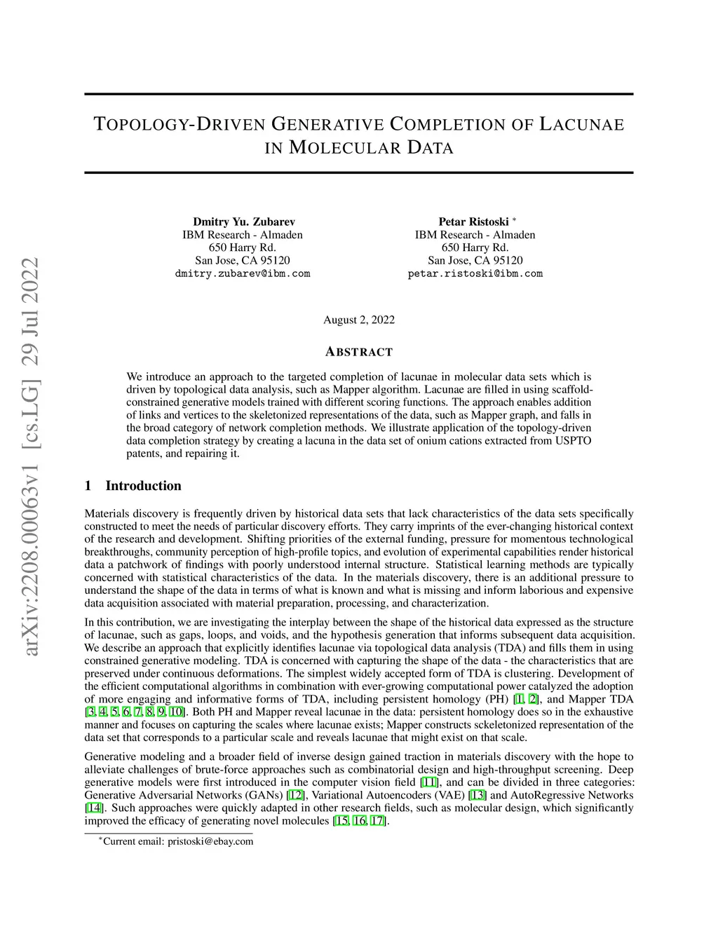 We introduce an approach to the targeted completion of lacunae in molecular data sets which is driven by topological data analysis, such as Mapper algorithm. Lacunae are filled in using scaffold-constrained generative models trained with different scoring functions. The approach enables addition of links and vertices to the skeletonized representations of the data, such as Mapper graph, and falls in the broad category of network completion methods. We illustrate application of the topology-driven data completion strategy by creating a lacuna in the data set of onium cations extracted from USPTO patents, and repairing it.