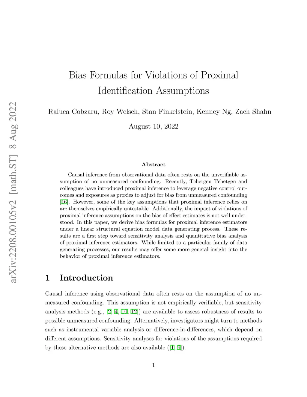 Causal inference from observational data often rests on the unverifiable assumption of no unmeasured confounding. Recently, Tchetgen Tchetgen and colleagues have introduced proximal inference to leverage negative control outcomes and exposures as proxies to adjust for bias from unmeasured confounding. However, some of the key assumptions that proximal inference relies on are themselves empirically untestable. Additionally, the impact of violations of proximal inference assumptions on the bias of effect estimates is not well understood. In this paper, we derive bias formulas for proximal inference estimators under a linear structural equation model data generating process. These results are a first step toward sensitivity analysis and quantitative bias analysis of proximal inference estimators. While limited to a particular family of data generating processes, our results may offer some more general insight into the behavior of proximal inference estimators.