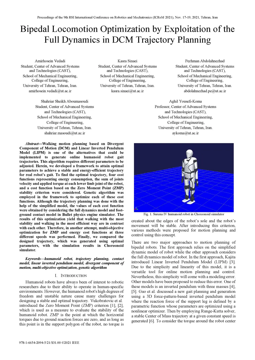 Walking motion planning based on Divergent Component of Motion (DCM) and Linear Inverted Pendulum Model (LIPM) is one of the alternatives that could be implemented to generate online humanoid robot gait trajectories. This algorithm requires different parameters to be adjusted. Herein, we developed a framework to attain optimal parameters to achieve a stable and energy-efficient trajectory for real robot's gait. To find the optimal trajectory, four cost functions representing energy consumption, the sum of joints velocity and applied torque at each lower limb joint of the robot, and a cost function based on the Zero Moment Point (ZMP) stability criterion were considered. Genetic algorithm was employed in the framework to optimize each of these cost functions. Although the trajectory planning was done with the help of the simplified model, the values of each cost function were obtained by considering the full dynamics model and foot-ground contact model in Bullet physics engine simulator. The results of this optimization yield that walking with the most stability and walking in the most efficient way are in contrast with each other. Therefore, in another attempt, multi-objective optimization for ZMP and energy cost functions at three different speeds was performed. Finally, we compared the designed trajectory, which was generated using optimal parameters, with the simulation results in Choreonoid simulator.