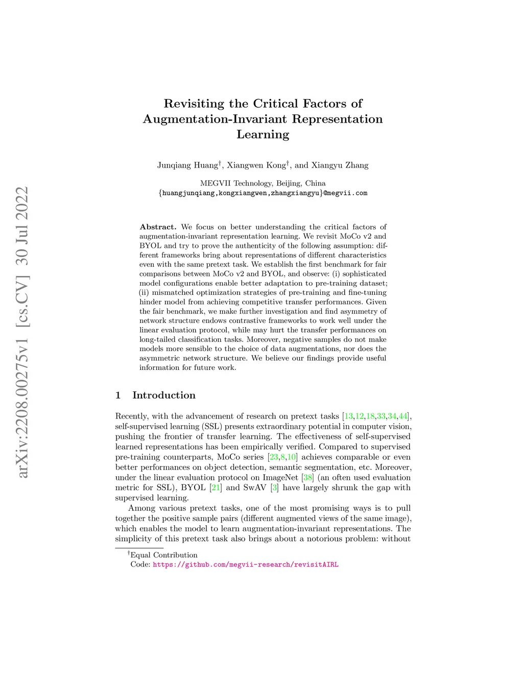 We focus on better understanding the critical factors of augmentation-invariant representation learning. We revisit MoCo v2 and BYOL and try to prove the authenticity of the following assumption: different frameworks bring about representations of different characteristics even with the same pretext task. We establish the first benchmark for fair comparisons between MoCo v2 and BYOL, and observe: (i) sophisticated model configurations enable better adaptation to pre-training dataset; (ii) mismatched optimization strategies of pre-training and fine-tuning hinder model from achieving competitive transfer performances. Given the fair benchmark, we make further investigation and find asymmetry of network structure endows contrastive frameworks to work well under the linear evaluation protocol, while may hurt the transfer performances on long-tailed classification tasks. Moreover, negative samples do not make models more sensible to the choice of data augmentations, nor does the asymmetric network structure. We believe our findings provide useful information for future work.