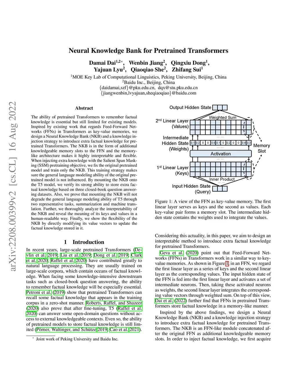 Neural Knowledge Bank for Pretrained Transformers