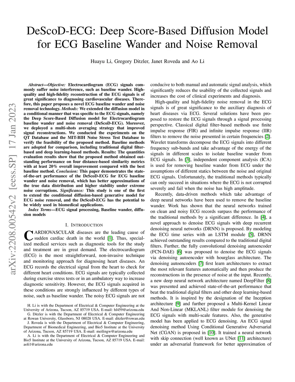 DeScoD-ECG: Deep Score-Based Diffusion Model for ECG Baseline Wander and