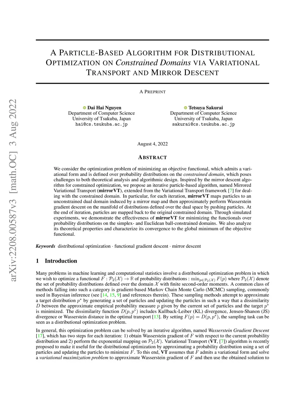 \textit{Constrained Domains} via Variational Transport and Mirror Descent