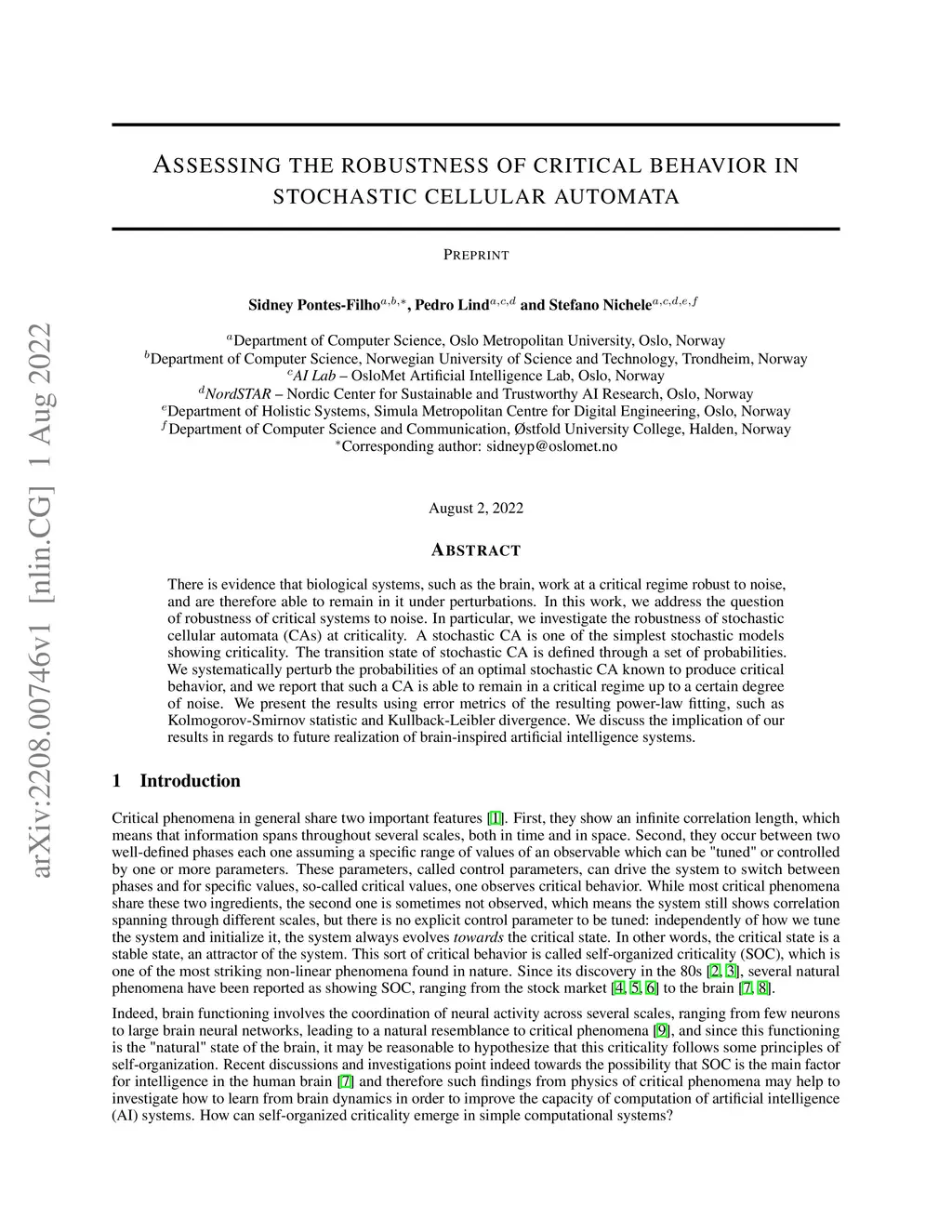 There is evidence that biological systems, such as the brain, work at a critical regime robust to noise, and are therefore able to remain in it under perturbations. In this work, we address the question of robustness of critical systems to noise. In particular, we investigate the robustness of stochastic cellular automata (CAs) at criticality. A stochastic CA is one of the simplest stochastic models showing criticality. The transition state of stochastic CA is defined through a set of probabilities. We systematically perturb the probabilities of an optimal stochastic CA known to produce critical behavior, and we report that such a CA is able to remain in a critical regime up to a certain degree of noise. We present the results using error metrics of the resulting power-law fitting, such as Kolmogorov-Smirnov statistic and Kullback-Leibler divergence. We discuss the implication of our results in regards to future realization of brain-inspired artificial intelligence systems.