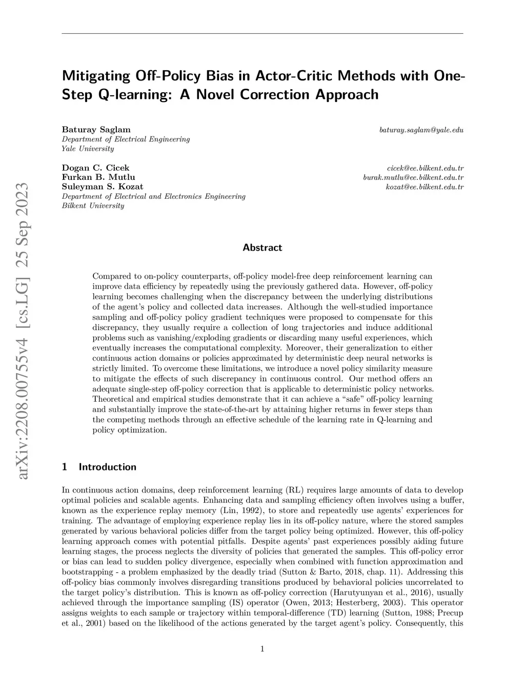 Mitigating Off-Policy Bias in Actor-Critic Methods with One-Step