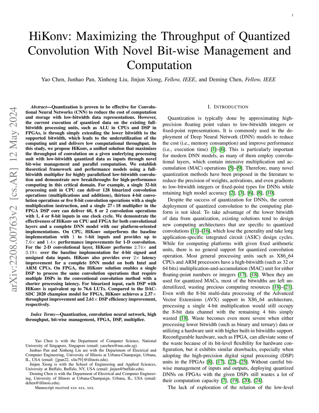 HiKonv: Maximizing the Throughput of Quantized Convolution With Novel