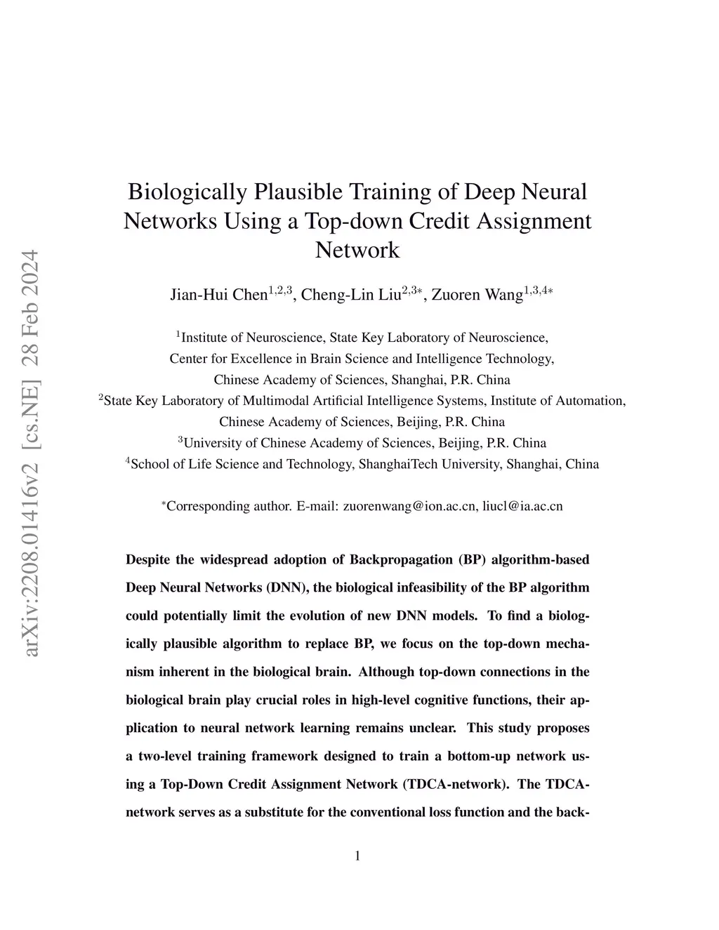 Biologically Plausible Training of Deep Neural Networks Using a Top-down