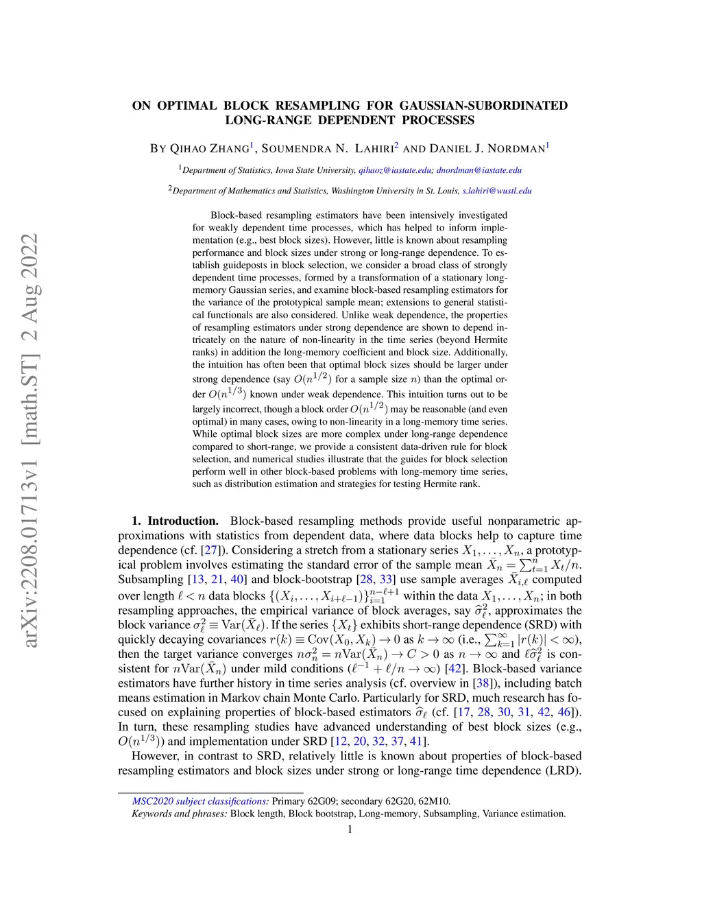 On optimal block resampling for Gaussian-subordinated long-range