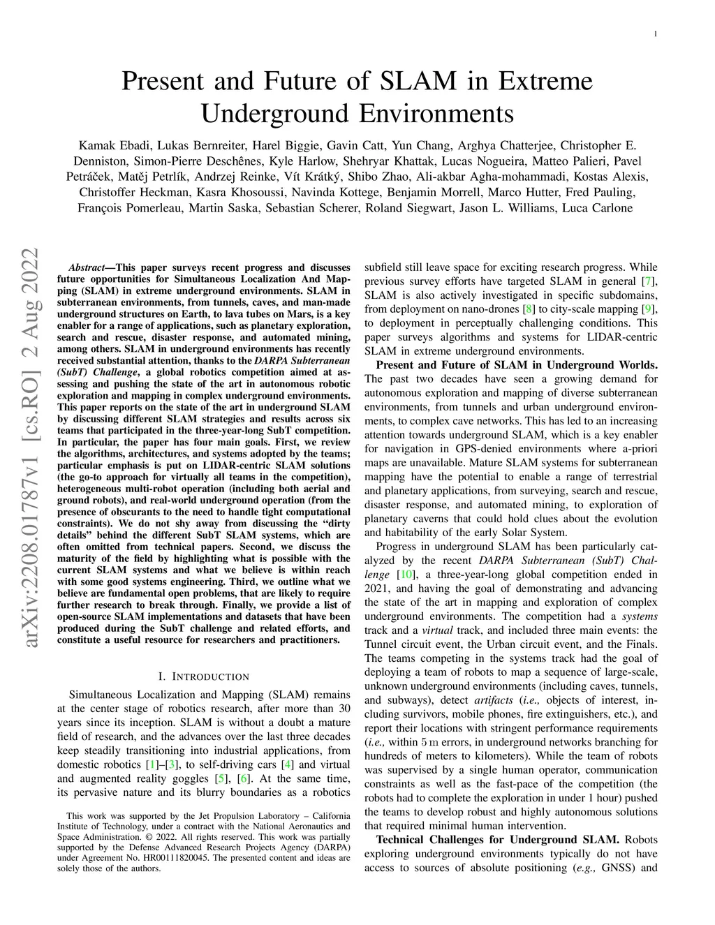 This paper reports on the state of the art in underground SLAM by discussing different SLAM strategies and results across six teams that participated in the three-year-long SubT competition. In particular, the paper has four main goals. First, we review the algorithms, architectures, and systems adopted by the teams; particular emphasis is put on lidar-centric SLAM solutions (the go-to approach for virtually all teams in the competition), heterogeneous multi-robot operation (including both aerial and ground robots), and real-world underground operation (from the presence of obscurants to the need to handle tight computational constraints). We do not shy away from discussing the dirty details behind the different SubT SLAM systems, which are often omitted from technical papers. Second, we discuss the maturity of the field by highlighting what is possible with the current SLAM systems and what we believe is within reach with some good systems engineering. Third, we outline what we believe are fundamental open problems, that are likely to require further research to break through. Finally, we provide a list of open-source SLAM implementations and datasets that have been produced during the SubT challenge and related efforts, and constitute a useful resource for researchers and practitioners.