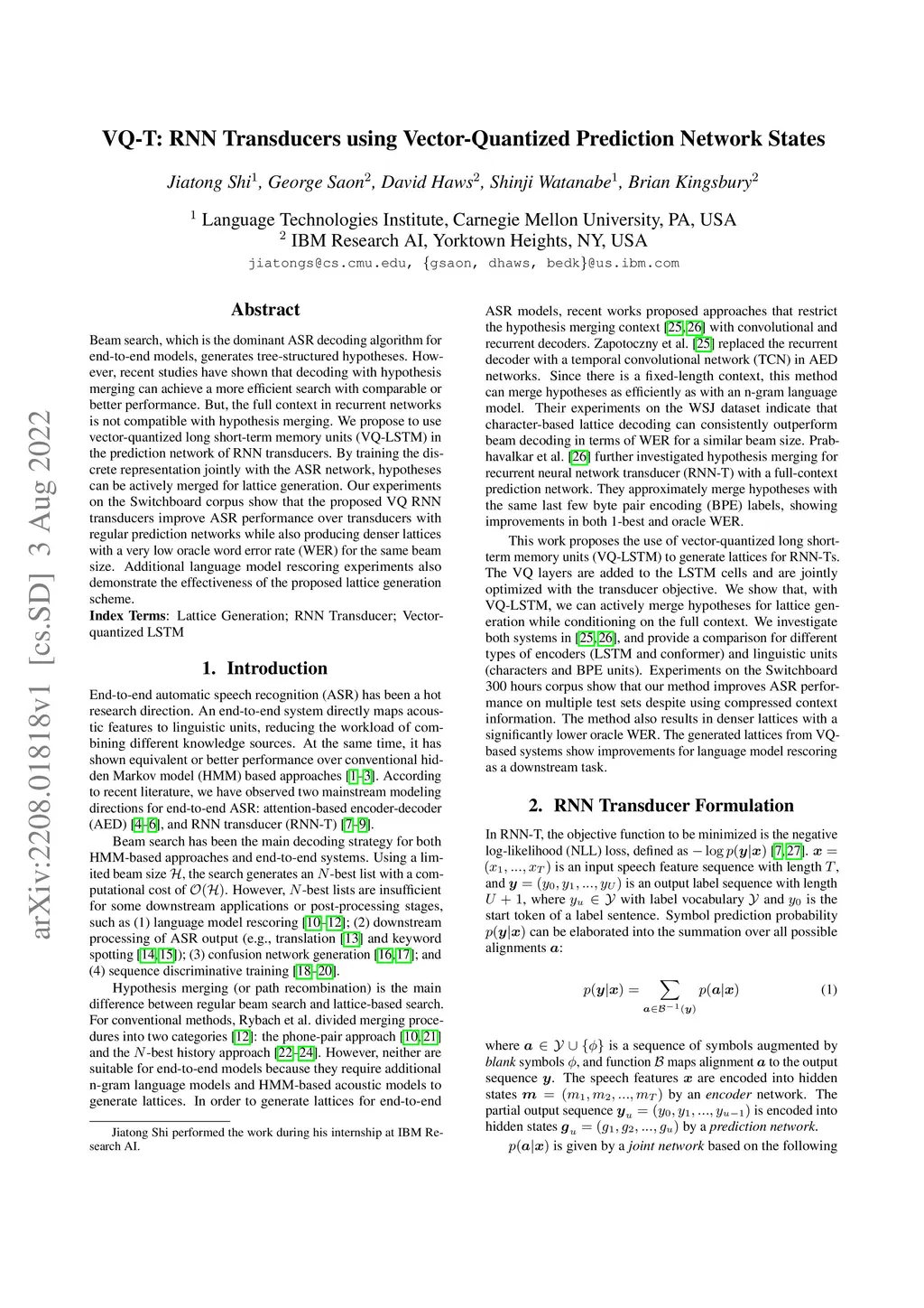 VQ-T: RNN Transducers using Vector-Quantized Prediction Network States
