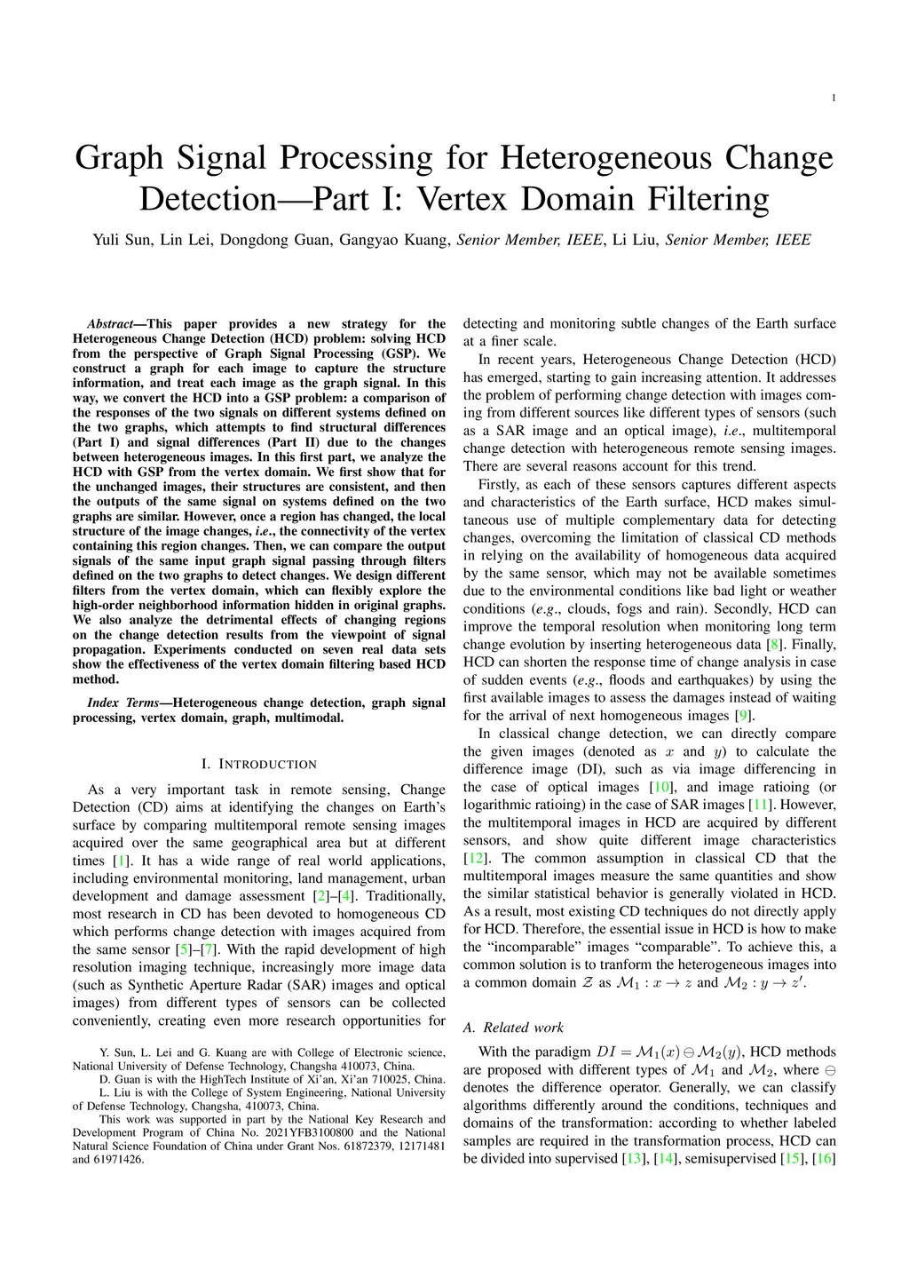 Graph Signal Processing for Heterogeneous Change Detection Part I: